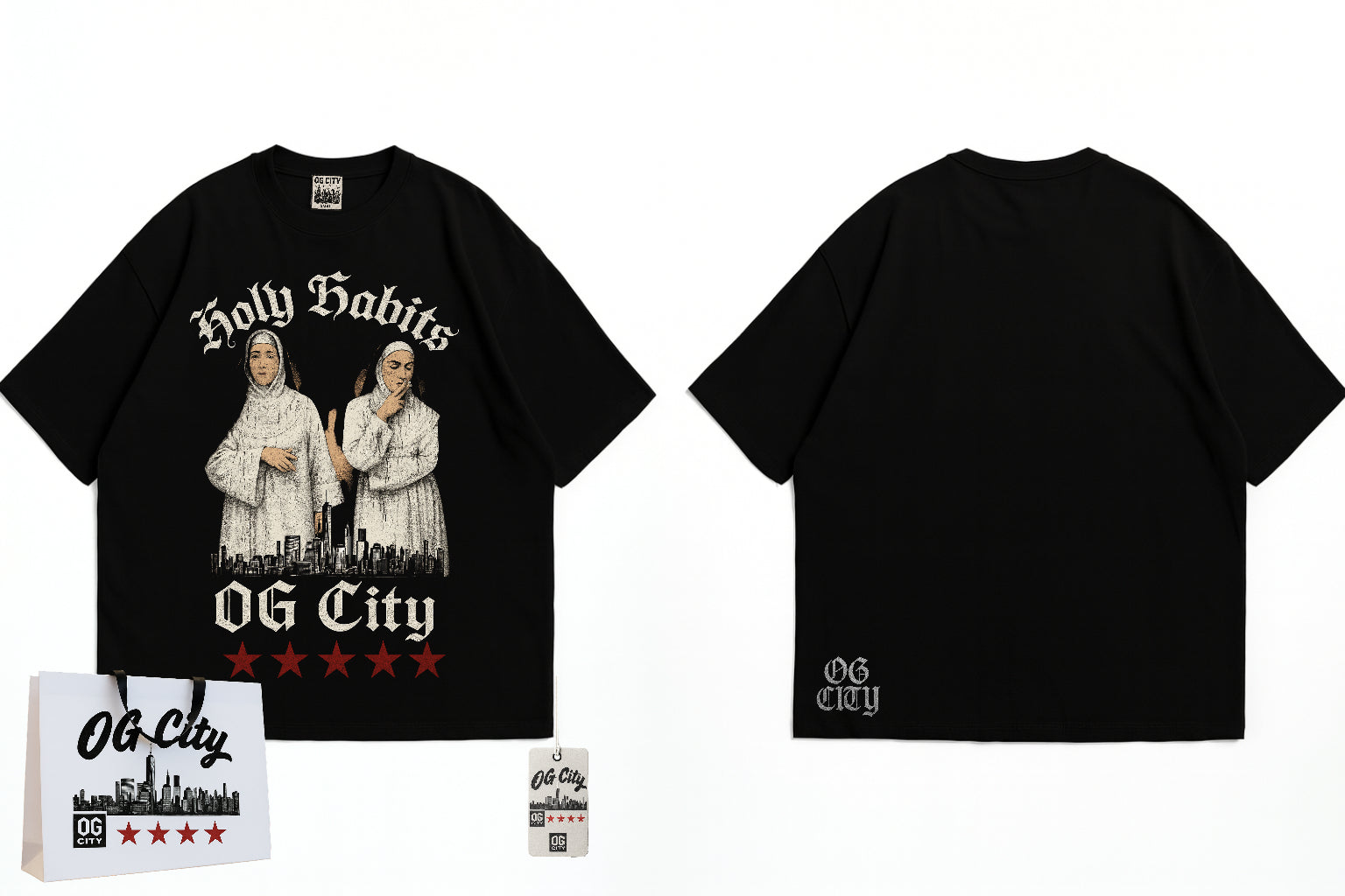 Sacred meets savage. The Holy Habits Tee flips tradition into bold streetwear , oversized fit, premium cotton, and a rebellious design that blends faith with urban edge.